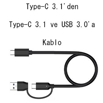 - Type-C 3.1'den Type-C 3.1 ve USB 3.0'a kablo ile gelir