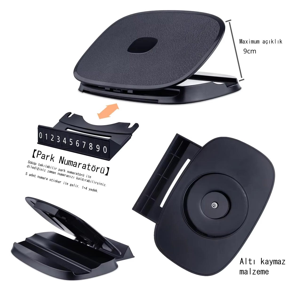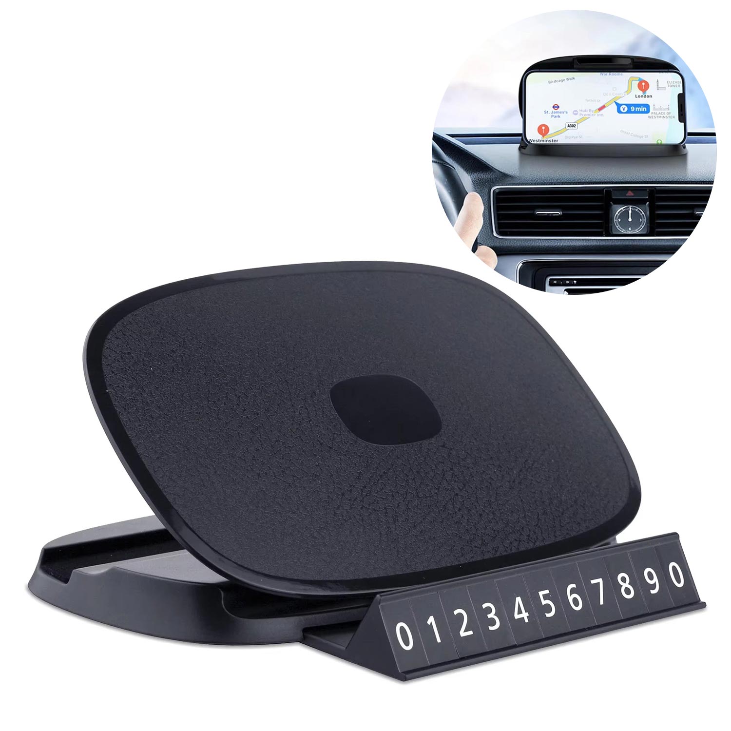 Cr10 3in1 Araç Torpido Üstü Telefon Tutucu Güneş Işığı Korumalı Yüzey Park Numaratör 360 Döner Yapışkan Taban