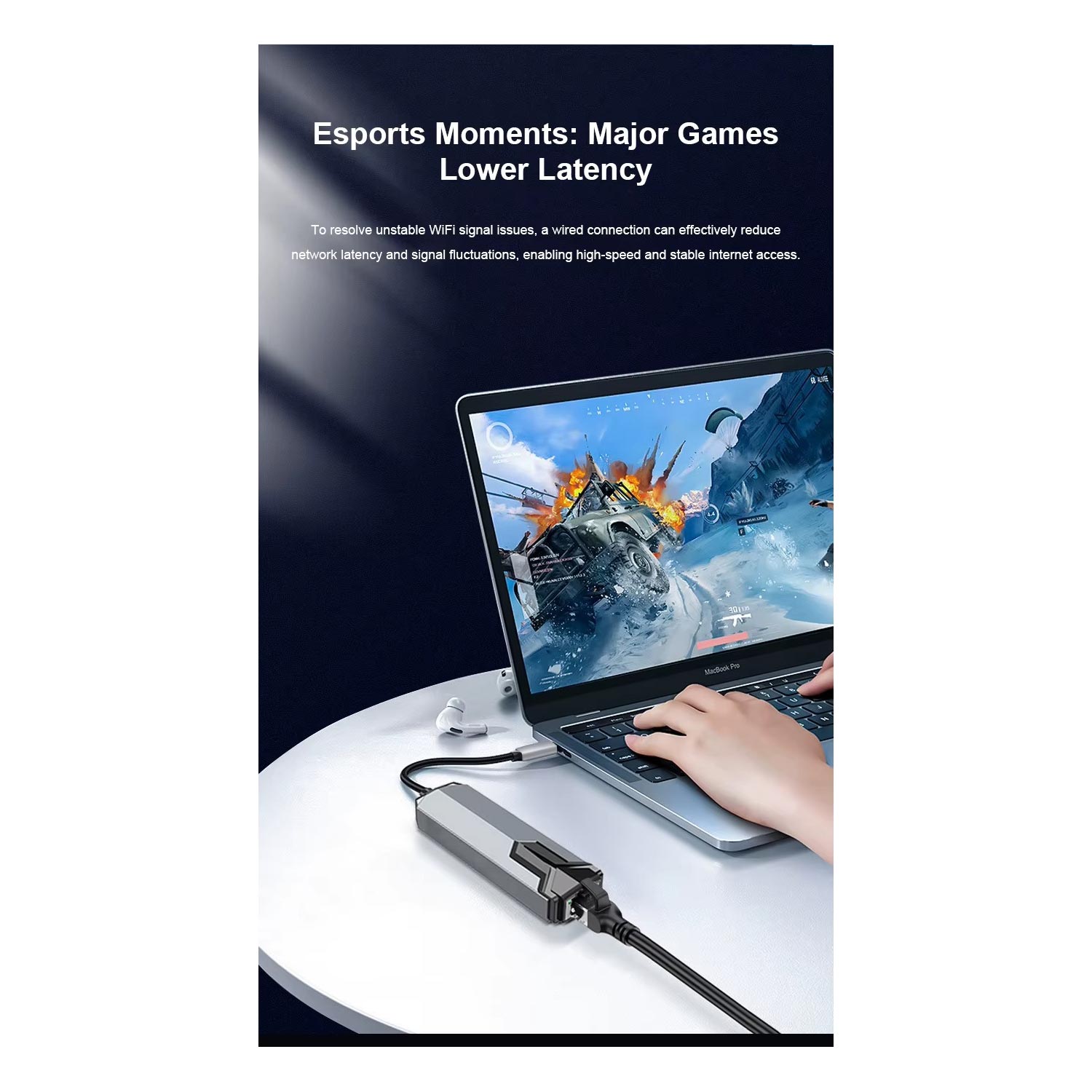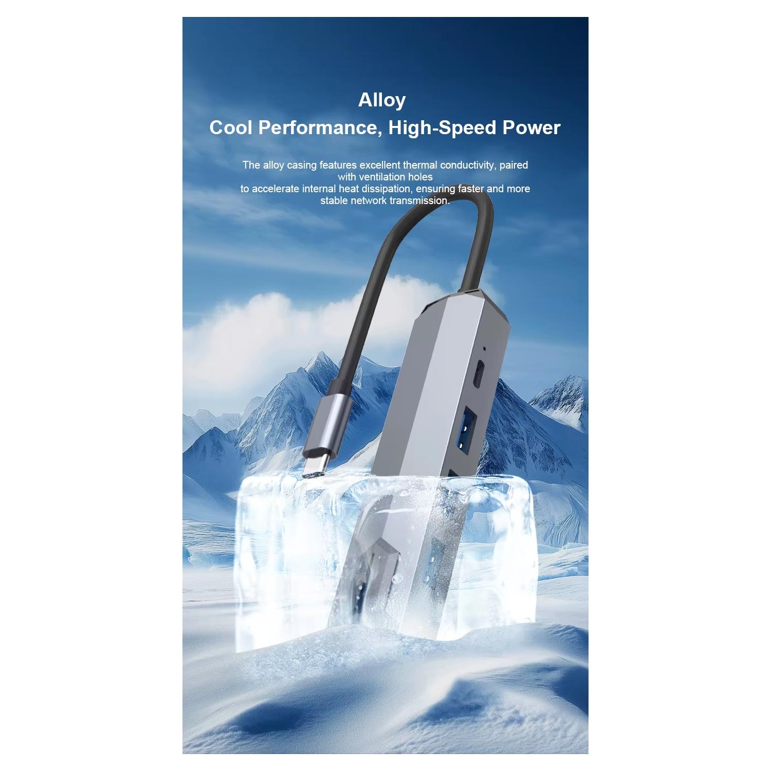 Cr33 5in1 Type-C Adaptör Çevirici, 3 Adet USB 3.0 5Gbps Hızında Port, 1000 Mbps Ethernet RJ45, PD 87W Hızlı Şarj Portu